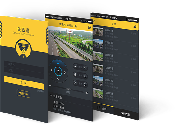 路视通手机端APP接入所有高速公路的监控视频设备,并按照高速公路路段进行分类分级,根据用户需要可任意查看高速公路的视频监控设备,并显示视频监控设备的实时画面,在获得授权许可的情况下可对远程视频监控设备进行控制。