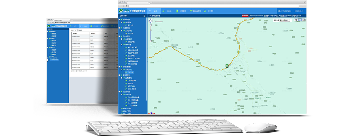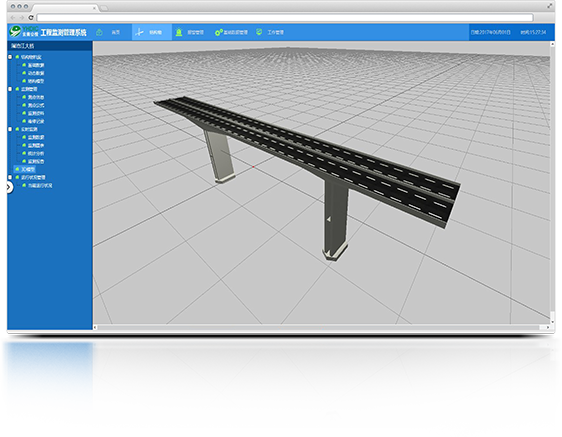 工程监测管理系统系统是集数据采集、传输、接收、数据整理与储存为一体的工程结构应力、应变、温度、挠度、位移数据跟踪采集系统。实现工程结构应力、应变、温度、挠度、位移等结构响应信息的实时跟踪监测,同时及时把握工程结构营运过程的状态演化情况,为公路管养工作提供重要的技术支撑。该软件平台分为数据采集系统和监控管理系统,数据采集系统负责从目前所有分散的检测软件收集数据,建立临时数据存储和数据分析后的持久化存储,为监控管理系统提供数据支撑。监控管理系统负责将数据采集系统采集到的数据进行可视化和监控人员的管理操作。