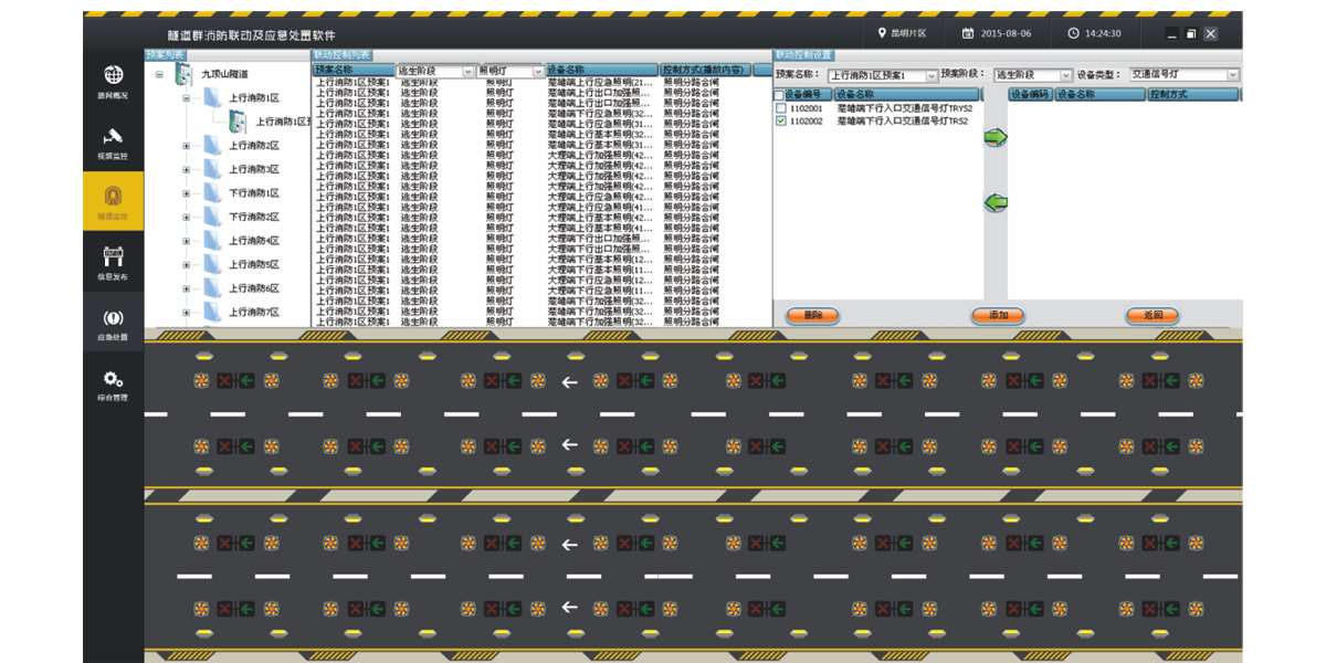 多样的预案定制:根据隧道具体的应用和情况,针对每个消防分区可以根据事件的种类不同定制多个预案。如:火灾、交通事故和日常维护等预案。