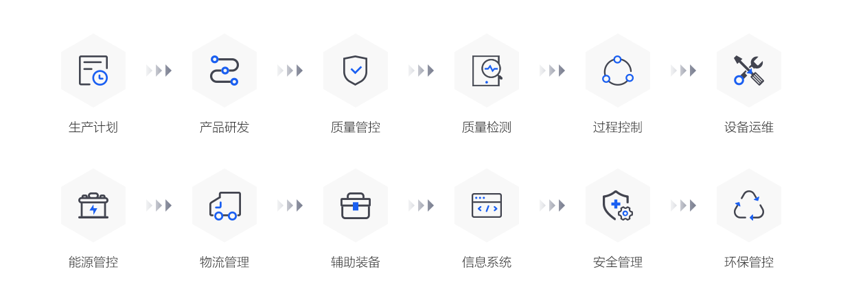 通过生产过程优化及资源精准分配,实现对所有能源介质的转换、传输、消耗全过程的监控和优化,降低能源、材料消耗、关键工序物耗等。通过实施精准控制、组织,减少生产过程的等待、库存等各种浪费。