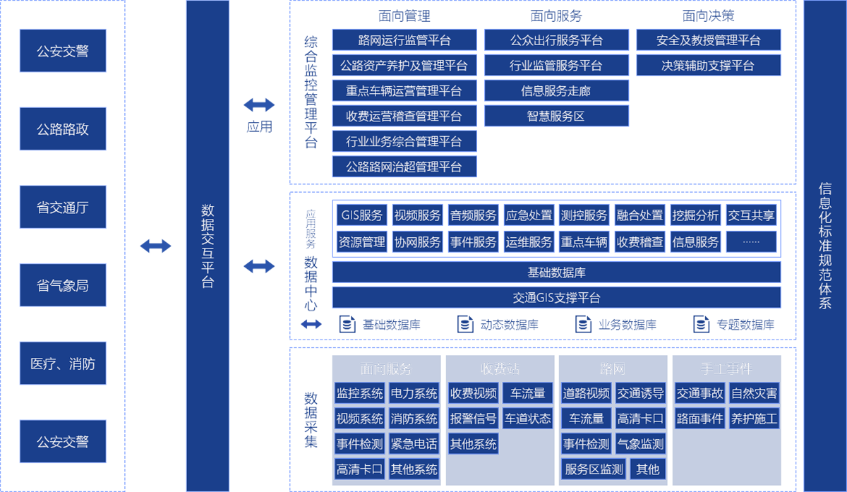 基于物联网、云计算、大数据、移动互联网等新技术的智慧隧道整体解决方案,围绕”数字化隧道、安全隧道、绿色舒适隧道、智慧应急隧道、智慧云管养隧道、智慧信息服务隧道、景观隧道、隧道大数据分析。采用先进的数据采集手段、精准的多源异构数据融合技术、强大的数据挖掘处理算法、高效的云平台架构,引入”动态化、平台化、自动化、智慧化”的思维方式。激活交通要素智能时性、信息交流的交互性及服务的广泛性,最终达到保障隧道通行安全、发挥隧道基础设施最大效能、提升隧道系统运行效率和管理水平,为管理决策、工程建设、运维管理、公众出行等提供信息服务。